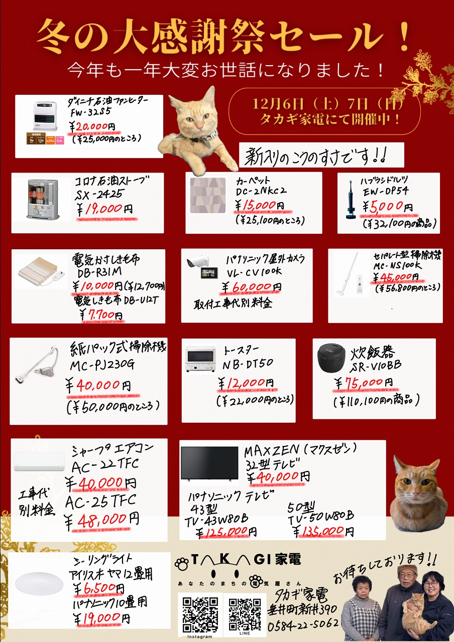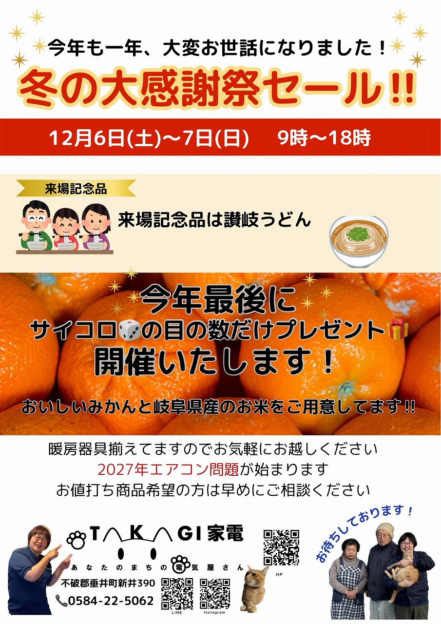 2025年もタカギ家電4人をよろしくお願いいたします。 |